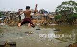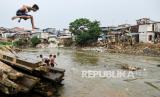 REPUBLIKA.CO.ID, JAKARTA -- Seorang anak bermain di Sungai Ciliwung, Jakarta, Selasa (24/8/2021). Sungai Ciliwung menjadi tempat untuk bermain bagi mereka di kala pandemi dikarenakan taman kota ditutup dan juga karena kurangnya ruang bermain bagi anak-anak.