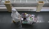 Tenaga kesehatan membawa obat dan peralatan medis di Ruang Isolasi Zam-Zam di RSUD Al-Ihsan, Baleendah, Kabupaten Bandung, Jumat (27/8). Berdasarkan data dari Pusat Informasi dan Koordinasi Covid-19 Provinsi Jawa Barat (Pikobar) pada (26/8), tingkat keterisian tempat tidur atau Bed Occupancy Rate (BOR) rumah sakit yang melayani Covid-19 dan tidak melayani Covid-19 mengalami penurunan dengan total keterisian 19,92 persen dibandingkan dengan bulan lalu yang mencapai 91,12 persen. Foto: Republika/Abdan Syakura (FOTO : REPUBLIKA/ABDAN SYAKURA)