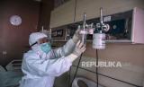 Tenaga kesehatan memeriksa alat bantu pernapasan di Ruang Isolasi Zam-Zam di RSUD Al-Ihsan, Baleendah, Kabupaten Bandung, Jumat (27/8). Berdasarkan data dari Pusat Informasi dan Koordinasi Covid-19 Provinsi Jawa Barat (Pikobar) pada (26/8), tingkat keterisian tempat tidur atau Bed Occupancy Rate (BOR) rumah sakit yang melayani Covid-19 dan tidak melayani Covid-19 mengalami penurunan dengan total keterisian 19,92 persen dibandingkan dengan bulan lalu yang mencapai 91,12 persen. Foto: Republika/Abdan Syakura (FOTO : REPUBLIKA/ABDAN SYAKURA)