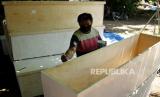 REPUBLIKA.CO.ID, GOWA -- Relawan Muhammadiyah Gowa menyelesaikan pembuatan peti mati di Desa Maccini Baji, Kabupaten Gowa, Sulawesi Selatan, Ahad (29/8/2021). Peti mati tersebut diberikan gratis untuk membantu pemulasaraan jenazah pasien Covid-19 di daerah itu, khususnya pasien muslim yang meninggal dunia saat isolasi mandiri.