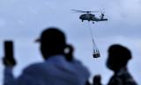 Helikopter MH-60R milik Angkatan Laut Australia bersiap menurunkan bantuan mesin desalinasi air yang diangkut dari Australia menggunakan kapal AL Australia HMAS Canberra di Pulau Nusa Lembongan, Klungkung, Bali, Minggu (29/8/2021). Bantuan mesin desalinasi air tenaga surya yang inisiasi Surfrider Foundation Australia dengan dana dan dukungan pemerintah Australia itu dihibahkan kepada Yayasan Pendidikan Wisata Darma Bali (SMA Wisata Darma) untuk membantu kebutuhan air minum bersih bagi masyarakat sekitar dengan memanfaatkan air laut yang diolah dengan mesin tersebut sekaligus untuk mengurangi penggunaan plastik sekali pakai dari air mineral kemasan. (FOTO : ANTARA/FIKRI YUSUF)