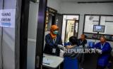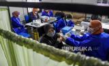 Warga menjalani pemeriksaan kesehatan sebelum disuntik vaksin Covid-19 saat pelaksanaan vaksinasi Covid-19 massal di Puskesmas Griya Antapani, Senin (30/8). Pemerintah Kota Bandung menyatakan program vaksinasi Covid-19 dosis pertama di Kota Bandung telah mencapai 60,68 persen atau 1.184.747 orang dan dosis kedua mencapai 38,24 persen atau 746.517 sementara dosis ketiga mencapai 0,49 persen atau 9.560 orang dari keseluruhan total target sasaran 1.952.352 orang. Foto: Republika/Abdan Syakura (FOTO : REPUBLIKA/ABDAN SYAKURA)