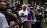 Sejumlah warga mengantre untuk melakukan verifikasi pendaftaran saat pelaksanaan vaksinasi Covid-19 massal di Puskesmas Griya Antapani, Senin (30/8). Pemerintah Kota Bandung menyatakan program vaksinasi Covid-19 dosis pertama di Kota Bandung telah mencapai 60,68 persen atau 1.184.747 orang dan dosis kedua mencapai 38,24 persen atau 746.517 sementara dosis ketiga mencapai 0,49 persen atau 9.560 orang dari keseluruhan total target sasaran 1.952.352 orang. Foto: Republika/Abdan Syakura (FOTO : REPUBLIKA/ABDAN SYAKURA)