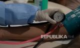 Petugas kesehatan memeriksa tekanan darah warga sebelum disuntik vaksin COVID-19 Moderna di RSUP Mohammad Hoesin (RSMH) Palembang, Sumatera Selatan, Senin (30/8/2021). Sebanyak 1.018 dosis vaksin COVID-19 Moderna diberikan RSUP Mohammad Hoesin Palembang kepada warga yang mendaftar secara daring dan belum mendapat vaksinasi sebelumnya. (FOTO : Antara/Nova Wahyudi)