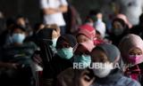 Warga antre untuk mendapatkan vaksinasi COVID-19 Moderna di RSUP Mohammad Hoesin (RSMH) Palembang, Sumatera Selatan, Senin (30/8/2021). Sebanyak 1.018 dosis vaksin COVID-19 Moderna diberikan RSUP Mohammad Hoesin Palembang kepada warga yang mendaftar secara daring dan belum mendapat vaksinasi sebelumnya. (FOTO : Antara/Nova Wahyudi)