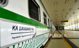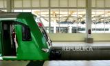 Kereta Api Bandara YIA saat uji coba sarana rangkaian kereta di Stasiun Kereta Api Bandara YIA, Kulonprogo, Yogyakarta, Senin (30/8). Rencananya KA Bandara YIA mulai beroperasi komersil pada September mendatang. Waktu tempuh menuju Bandara YIA dari Stasiun Yogyakarta selama 39 menit. Tarif yang diberlakukan pada awal operasional nanti sebesar Rp 20 ribu untuk sekali perjalanan. (FOTO : Wihdan Hidayat / Republika)