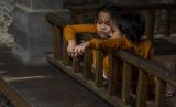 Anak kembar siam Al Putri Dewi Ningsih dan Al Putri Anugrah bermain di sebuah saung di Bandung, Jawa Barat, Senin (30/8/2021). Putri dan Dewi yang berusia delapan tahun tersebut datang bersama keluarga ke Kota Bandung dari Garut untuk melakukan pemeriksaan kesehatan dan pengukuran pembuatan kursi roda khusus yang mampu membantu mereka beraktivitas dan sekolah. (FOTO : ANTARA/NOVRIAN ARBI)