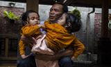 REPUBLIKA.CO.ID,BANDUNG -- Anak kembar siam Al Putri Dewi Ningsih dan Al Putri Anugrah digendong oleh ayahnya di Bandung, Jawa Barat, Senin (30/8/2021).