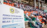 Sejumlah pelajar mengikuti vaksinasi COVID-19 massal di Stadion Pakansari ,Cibinong, Kabupaten Bogor, Jawa Barat, Selasa (31/8/2021). Wakil Menteri Kesehatan Dante Saksono Harbuwono mengatakan, saat ini sebanyak 2,3 juta anak dan remaja usia 12-18 tahun sudah divaksinasi COVID-19 dosis pertama. (FOTO : Antara/Yulius Satria Wijaya)
