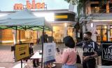Pengunjung beraktivitas di kawasan Mbloc Space, Jakarta, Selasa (31/8). Pada masa perpanjangan pelonggaran PPKM level 3 di DKI Jakarta yang berlangsung hingga 6 September 2021 mendatang pemerintah memberikan kelonggaran bagi restoran dan pusat perbelanjaan maksimum kapasitas 50 persen dari semula hanya 25 persen dan jam operasional hingga 21.00 WIB. Kawasan Mbloc Space mulai beroperasi kembali dengan mewajibkan pengunjung memiliki sertifikat vaksin yang diakses melalui aplikasi pedulilindungi.id serta menerapkan protokol kesehatan yang ketat. (FOTO : Republika/Thoudy Badai)
