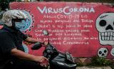 REPUBLIKA.CO.ID, PANDEGLANG -- Pengendara roda dua melintas di depan mural informasi bahaya COVID-19 di Pandeglang, Banten, Selasa (31/8/2021). Ketua Bidang Perubahan Perilaku Satgas Penanganan COVID-19 Sonny Harry B Harmadi mengatakan Positivity Rate di Indonesia saat ini turun di angka 12,13 persen dibandingkan pada puncak kasus pada Minggu ketiga bulan Juli di angka 30,55 persen.