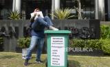 REPUBLIKA.CO.ID, JAKARTA -- Massa aksi yang tergabung dalam Koalisi Masyarakat Sipil Antikorupsi melakukan aksi teatrikal di depan gedung Komisi Pemberantasan Korupsi (KPK), Jakarta, Selasa (31/8/2021). Aksi teatrikal itu untuk mengkritik para pejabat publik yang yang melakukan pelanggaran Kode Etik, Hak Asasi Manusia (HAM), pidana, dan koruptor.