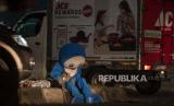 Pengamen badut, Fajar (17) menemani adiknya yang terlelap di pinggir Jalan TB Simatupang, Cilandak, Jakarta Selatan, Selasa (31/8/2021). Beragam cara ditempuh warga untuk bertahan hidup selama pandemi salah satunya dengan menjadi pengamen badut yang kini kian marak di Ibu Kota. (FOTO : ANTARA/Sigid Kurniawan)