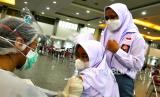 REPUBLIKA.CO.ID,YOGYAKARTA -- Pelajar mengikuti vaksinasi Covid-19 di Sentra Vaksinasi JEC, Yogyakarta, Rabu (1/9).