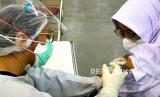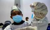 Tenaga kesehatan mempersiapkan suntikan untuk vaksinasi massal Covid-19 di Sentra Vaksinasi JEC, Yogyakarta, Rabu (1/9). Sentra vaksinasi Covid-19 yang bekerja sama dengan Tiket.com ini menyediakan 3 ribu dosis setiap hari selama seminggu. Saat ini rata-rata cakupan vaksinasi Covid-19 di Yogyakarta sudah mencapai 32 ribu dosis per hari. Berarti melewati target provinsi yang ditetapkan yakni 20 ribu dosis per hari. (FOTO : Wihdan Hidayat / Republika)