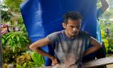 Orang dengan gangguan jiwa (ODGJ) berpose saat petugas melakukan perekaman data KTP elektronik di Nagari Tandikek, Kabupaten Padangpariaman, Sumatera Barat, Rabu (1/9/2021). Dinas Kependudukan dan Catatan Sipil Padangpariaman berinovasi dengan pelayanan perekaman KTP elektronik Tunggu di Rumah Saja khusus bagi lansia, penyandang disabilitas, orang sakit dan orang dengan gangguan jiwa (ODGJ). (FOTO : ANTARA/Iggoy el Fitra)