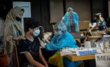 REPUBLIKA.CO.ID, JAKARTA -- Warga menunggu antrean vaksin Covid-19 Pfizer di CIlandak Town Square, Jakarta, Rabu (1/9). Sebanyak 500 dosis vaksin Covid-19 Pfizer disediakan ditempat tersebut sebagai upaya percepatan vaksinasi Covid-19 di DKI Jakarta.