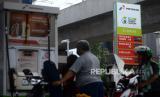 Konsumen mengantre untuk mengisi bahan bakar minyak (BBM) di SPBU Green Energy Station Fatmawati, Jakarta, Rabu (1/9). (FOTO : Prayogi/Republika.)
