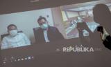 Pewarta merekam layar yang menampilkan jalannya sidang putusan secara daring dari Terdakwa Pejabat pembuat komitmen di Kementerian Sosial, Adi Wahyono di Gedung Merah Putih KPK, Jakarta, Rabu (1/9/2021). Adi Wahyono divonis tujuh tahun penjara dan denda Rp350 juta subsider enam bulan kurungan penjara oleh majelis hakim Pengadilan Tipikor Jakarta karena terbukti melakukan tindak pidana korupsi pada pengadaan bantuan sosial penanganan pandemi COVID-19 untuk wilayah Jabodetabek di Kementerian Sosial Tahun 2020. (FOTO : ANTARA/M Risyal Hidayat)