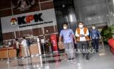 REPUBLIKA.CO.ID, JAKARTA -- Terdakwa pejabat pembuat komitmen di Kementerian Sosial, Adi Wahyono (kanan) berjalan meninggalkan ruangan usai mengikuti sidang daring di Gedung Merah Putih KPK, Jakarta, Rabu (1/9/2021).