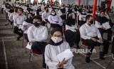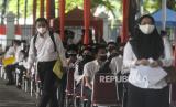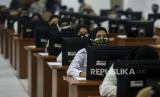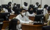 Sejumlah peserta bersiap melaksanakan tes Seleksi Kemampuan Dasar (SKD) Calon Pegawai Negeri Sipil (CPNS) di Kantor Badan Kepegawaian Negara (BKN), Jakarta, Kamis (2/9). Sebanyak 800 peserta mengikuti tes SKD CPNS 2021 yang dibagi dalam dua sesi dengan menerapkan protokol kesehatan yang ketat. Republika/Putra M. Akbar (FOTO : Republika)