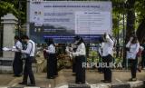 Sejumlah peserta tes Seleksi Kemampuan Dasar (SKD) Calon Pegawai Negeri Sipil (CPNS) mengantre untuk memasuki Kantor Badan Kepegawaian Negara (BKN) di Jakarta, Kamis (2/9). Sebanyak 800 peserta mengikuti tes SKD CPNS 2021 yang dibagi dalam dua sesi dengan menerapkan protokol kesehatan yang ketat. (FOTO : Republika/Putra M. Akbar)