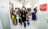 Sejumlah tenaga kesehatan berjalan dengan membawa barang pribadinya keluar dari Rusun Pasar Rumput, Manggarai, Jakarta, Kamis (2/9/2021). Menurut Koordinator Lapangan Medis Rusun Pasar Rumput, Letkol Arjuniansyah sebanyak 92 tenaga kesehatan dikembalikan ke Rumah Sakit Darurat COVID-19 (RSDC) Wisma Atlet Kemayoran dikarenakan Rusun Pasar Rumput dinonaktifkan sementara dalam merawat pasien terkonfirmasi positif tanpa gejala, tapi disiagakan jika terjadi kembali lonjakan COVID-19. (FOTO : Antara/M Risyal Hidayat)