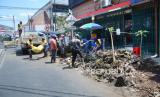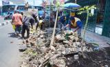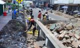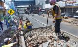 Petugas Dinas Pekerjaan Umum (DPU) membongkar trotoar di Jalan Kepatihan, Kota Bandung, untuk diperlebar dan ditanami ulang pepohonan, Kamis (2/8). Pekerjaan itu merupakan bagian dari program revitalisasi kawasan Alun-alun Kota Bandung, dengan harapan dapat membangkitkan wisata belanja dan perekonomian Kota Bandung. (FOTO : Edi Yusuf/Republika)