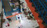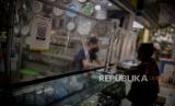Pedagang beraktivitas di Pasar Santa, Jakarta, Kamis (2/9). Berbagai upaya dilakukan pedagang Pasar Santa untuk menarik pelanggan pada masa PPKM level 3 dengan menerapkan stiker vaksin di beberapa ruko, menyediakan fasilitas disinfektan sebelum masuk pasar, serta mengimbau pedagang dan pengunjung untuk menerapkan protokol kesehatan yang ketat.Republika/Thoudy Badai (FOTO : Republika/Thoudy Badai)
