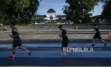 REPUBLIKA.CO.ID, BANDUNG -- Warga berolahraga di area Lapangan Gasibu, Bandung, Jawa Barat, Kamis (2/9/2021). Pemerintah Provinsi Jawa Barat kembali membuka Lapangan Gasibu untuk warga khusus aktivitas olahraga dengan membatasi jumlah pengunjung sebanyak 125 orang.