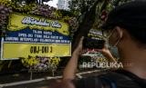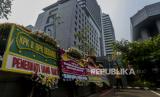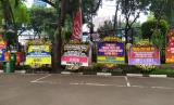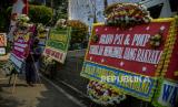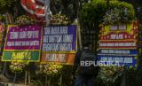 REPUBLIKA.CO.ID, JAKARTA -- Pekerja memasang karangan bunga di Halaman Kantor DPRD DKI Jakarta, Kamis (2/9). Sebanyak 18 karangan bunga yang berisikan dukungan interpelasi terhadap Gubernur DKI Jakarta Anies Baswedan terkait gelaran Formula E.