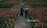 REPUBLIKA.CO.ID, PATHUK -- Warga mengunjungi kawasan wisata kebun bunga amarilis di Salam, Pathuk, Gunungkidul, DI Yogyakarta, Kamis (2/9/2021). Pengelola mengaku bunga amarilis di kawasan itu mulai berbunga sejak beberapa hari terakhir, tetapi belum dibuka untuk wisata menyusul penerapan PPKM di Yogyakarta serta guna menekan penyebaran Covid-19.