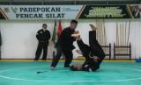 REPUBLIKA.CO.ID, PALEMBANG -- Atlet Pencak Silat Sumatera Selatan berlatih di Padepokan Pencak Silat Abas Akbar, Palembang, Sumatera Selatan, Kamis (2/9/2021).