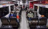 REPUBLIKA.CO.ID, KUALANAMU -- Petugas kebersihan melintas di samping kereta api Railink di Stasiun Besar Medan, Sumatra Utara, Kamis (2/9/2021). Manajemen PT Railink mulai mengoperasikan kembali 20 jadwal perjalanan kereta Bandara Kualanamu per hari setelah sempat menghentikan operasi pada 21 Juli-31 Agustus 2021.