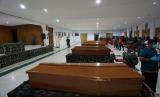 Empat peti Jenazah anggota TNI korban serangan separatis berada di Aula Praja Vira Tama Markas Komando Korem 181/PVT Kota Sorong, Papua Barat, Kamis (2/9/21). Empat jenazah prajurit TNI AD, korban penyerangan Kelompok Saparatis Teroris (KST) di Pos persiapan Koramil Kisor Distrik Aifat, Kabupaten Maybrat, Papua Barat tiba dan disemayamkan di Kota Sorong untuk selanjutnya akan diterbangkan ke daerah masing-masing. (FOTO : ANTARA/OLHA MULALINDA)