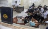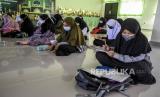 REPUBLIKA.CO.ID, BANDUNG -- Sejumlah santriwati mengikuti simulasi pembelajaran tatap muka (PTM) di Pondok Pesantren Nurul Iman, Cibaduyut, Kota Bandung, Jumat (3/9). Pemerintah Kota Bandung berencana akan menggelar pembelajaran tatap muka (PTM) secara terbatas pada 8 September mendatang dengan menerapkan protokol kesehatan pencegahan Covid-19 secara ketat.