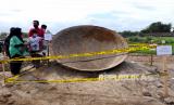REPUBLIKA.CO.ID, BANTUL -- Warga ramai menonton temuan wajan raksasa di Kalurahan Jambidan, Bantul, Yogyakarta, Jumat (3/9). Wajan raksasa dengan diameter 2,5 meter ini ditemukan saat pembangunan lapangan sepak bola desa.