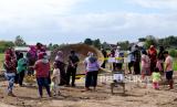 Pedagang menggelar lapak di lokasi temuan wajan raksasa, Kalurahan Jambidan, Bantul, Yogyakarta, Jumat (3/9). Wajan raksasa dengan diameter 2,5 meter ini ditemukan saat pembangunan lapangan sepak bola desa. Menurut warga sekitar wajan raksasa ini berfungsi untuk mencegah tanah amblas akibat mempompa air dari dalam tanah. Saat ini lokasi penemuan wajan raksasa menjadi lokasi piknik dadakan warga. (FOTO : Wihdan Hidayat / Republika)
