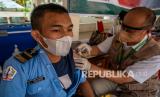 REPUBLIKA.CO.ID, PALU -- Dua pelajar menjalani pemeriksaan kesehatan saat vaksinasi COVID-19 dosis pertama di Palu, Sulawesi Tengah, Jumat (3/9/2021).