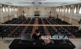 REPUBLIKA.CO.ID, PALEMBANG -- Petugas menyiapkan perangkat komputer untuk pelaksanaan Seleksi Kompetensi Dasar (SKD) Calon Pegawai Negeri Sipil (CPNS) melalui Computer Assisted Test (CAT) di Aula The Sultan Convention Center, Palembang, Sumatera Selatan, Jumat (3/9/2021).