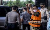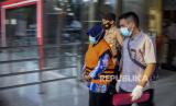 Salah satu tersangka saat akan menaiki mobil tahanan di Gedung KPK, Jakarta, Sabtu (4/9). KPK menahan 17 tersangka terkait kasus dugaan suap jual beli jabatan di lingkungan Pemerintah Kabupaten Probolinggo, Jawa Timur, setelah sebelumnya KPK menahan Bupati Probolinggo Puput Tantriana Sari dan Suaminya anggota DPR periode 2019-2024 Hasan Aminuddin dalam operasi tangkap tangan pada Senin (30/8) lalu. Republika/Putra M. Akbar (FOTO : Republika/Putra M. Akbar)