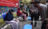 REPUBLIKA.CO.ID, SERANG -- Kapolda Banten Irjen Pol Rudi Heriyanto (kiri) didampingi Wakapolda Brigjen Pol Ery Nursatari (kanan) berdialog dengan warga lanjut usia saat penyerahan bantuan paket sembako untuk warga terdampak COVID-19 di Serang, Banten, Jumat (3/9/2021).