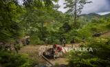 REPUBLIKA.CO.ID, DATAR AJAB -- Sejumlah warga bersama anggota Posko Meratus memperbaiki salah satu jembatan penghubung antar desa dengan swadaya di Desa Datar Ajab, Kabupaten Hulu Sungai Tengah, Kalimantan Selatan, Sabtu (4/9/2021).