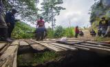 Warga Perbaiki Jembatan Satu-satunya di Desa Datar Ajab