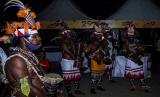 Sejumlah orang berpakaian adat Suku Tobati saat Gebyar PON XX Papua Kluster Kota Jayapura di Lapangan Karang Papua Trade Center (PTC) Entrop, Kota Jayapura, Papua, Sabtu (4/9/2021). Gebyar PON XX Papua Kluster Kota Jayapura tersebut menghadirkan hiburan penyanyi nasional, lokal, stan kreatif kuliner UMKM se-Kota Jayapura dengan tetap menerapkan protokol kesehatan COVID-19. (FOTO : ANTARA/Indrayadi TH)