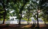 Warga beraktivitas di tepi danau, kawasan Perkampungan Budaya Betawi Setu Babakan, Jagakarsa, Jakarta, Ahad (5/9/2021). Kawasan perkampungan tersebut terpilih menjadi salah satu dari 50 desa wisata terbaik di Indonesia oleh Kementerian Pariwisata dan Ekonomi Kreatif dalam dalam ajang Anugerah Desa Wisata Indonesia (ADWI) 2021. (FOTO : Antara/Aprillio Akbar)