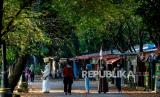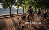 REPUBLIKA.CO.ID,JAKARTA -- Warga bersepeda di kawasan Perkampungan Budaya Betawi Setu Babakan, Jagakarsa, Jakarta, Ahad (5/9/2021).