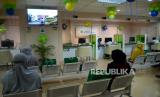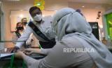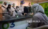 Direktur Utama BPJS Ketenagakerjaan Anggoro Eko Cahyo melayani peserta BPJS saat peringatan Hari Pelanggan Nasional 2021 di Kantor BPJS Ketenagakerjaan Cabang Menara Jamsostek, Jakarta, Senin (6/9). BPJS Ketenagakerjaan dalam menyambut Hari Pelanggan Nasional 2021 mengusung tema Protecting and Empowering, BPJS Ketenagakerjaan ingin membangun budaya pelayanan yang lebih baik guna menciptakan loyalitas serta pengalaman yang menyenangkan (customer experience) bagi para peserta. (FOTO : Prayogi/Republika.)