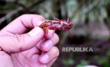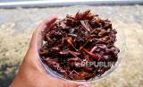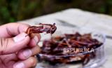 REPUBLIKA.CO.ID,YOGYAKARTA -- Walang goreng atau belalang merupakan makanan khas yang dijual pedagang di kawasan Tahura Bunder, Jalan Wonosari, Gunungkidul, Yogyakarta, Senin (6/9).