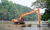 Petugas mengoperasikan alat berat untuk mengeruk endapan lumpur di Situ Gede, Kota Bogor, Jawa Barat, Senin (6/9/2021). Pemerintah Provinsi Jawa Barat melakukan revitalisasi kawasan Situ Gede, Bogor menjadi destinasi wisata, konservasi dan pemberdayaan ekonomi masyarakat sekitar dengan anggaran sebesar Rp5,016 miliar dan ditargetkan selesai pada Desember 2021. (FOTO : Antara/Arif Firmansyah)